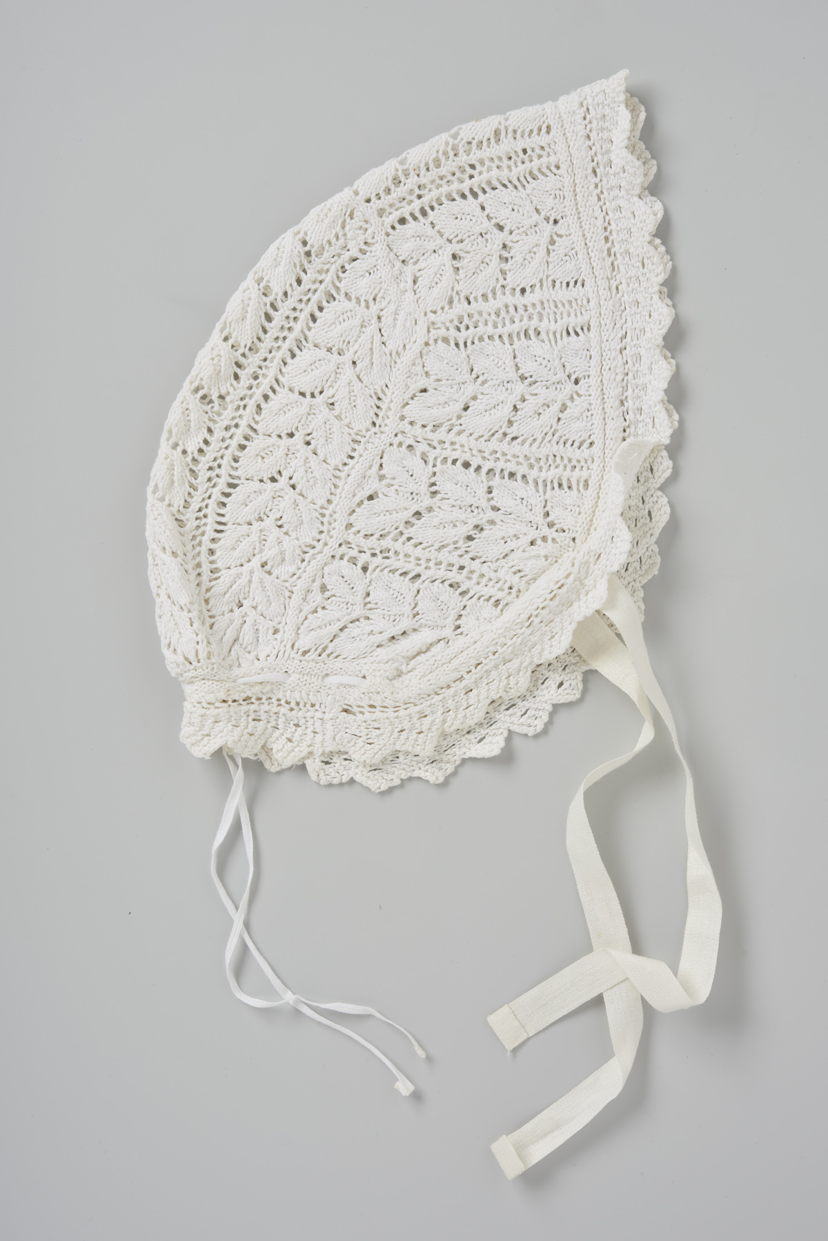 In deze prachtige muts is het motief van manchette IV-1 te herkennen (zie staaltje hierboven). Langs de rand is een kantje genaaid dat lijkt op Neige I-14.