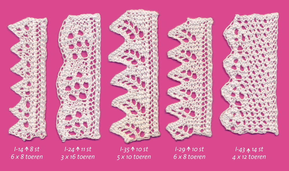 Hieronder de hier genoemde neiges (kantjes) die ik gebreid heb uit het boekje van Christine Sluter