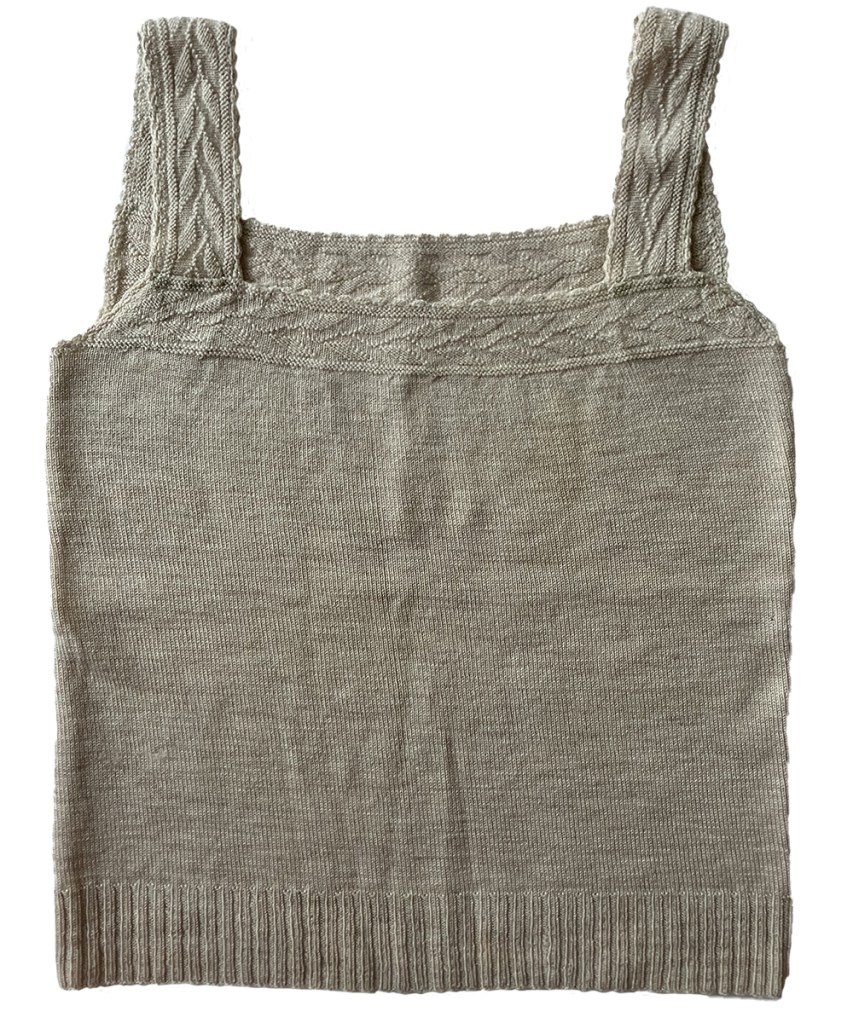 Afgelopen jaar kon ik deze mooie borstrok aan mijn bescheiden verzameling toevoegen. Het komt niet vaak voor dat de maakster van een gebreid kledingstuk bekend is en bovendien kon de schenkster haar levensverhaal vertellen. Wat de borstrok ook bijzonder maakt is de rand in bladmotief. Wanneer deze borstrok is gemaakt is niet precies bekend, maar waarschijnlijk in de jaren 1920-1940.
