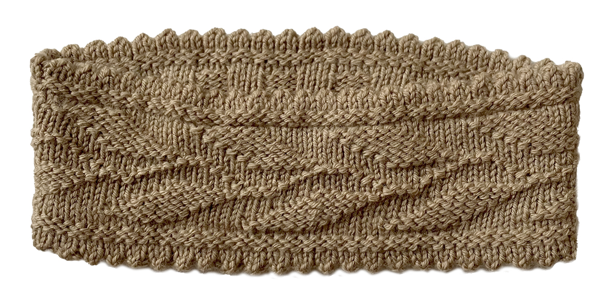 De haarband wordt rondgebreid en bij de muizentandjes (picotrand) wordt het werk aan de binnenzijde verder gebreid in boordsteek. Uiteindelijk worden de steken van de laatste toer aan de steken uit de opzet gemaasd. Een leuk snel project, ideaal om cadeau te geven.